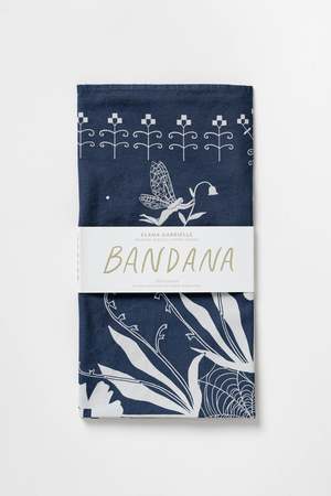 The Hedgerow Bandana is stitched from dreams of cobweb lace and spidersilk, secret gardens and fairies dancing with moonlight lanterns. Nocturnal beings, night blooms, and a deep indigo sky. Woven from 100% cotton and printed with earth-friendly inks, its an ethically made, durable textile designed to be worn, tied, wrapped, or displayed. A perfect outfit accessory, an everyday keepsake, sustainable gift wrap, or thoughtful gift for nature lovers, gardeners, and adventurers alike. - Size: 22" x 22" - Material: 100% unbleached cotton - Printed with water-based inks - Care: Machine or hand wash cold with like colors, low heat tumble or line dry