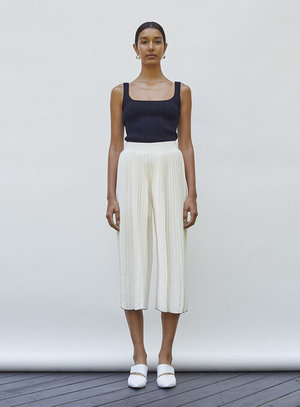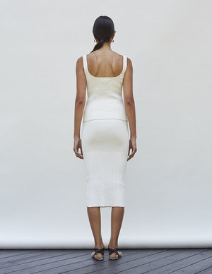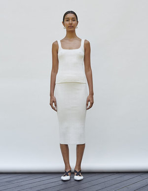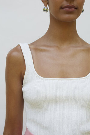 Lena is a versatile, varigated-ribbed, tank easy to pop-on-and-go, easily dressed up or down. The tank is slim fit with a flattering square scooped front and back neck-line that effortlessly acts as a seasonal-staple in a timeless, pure white. Made in Peru with 95% Peruvian mercerized cotton and 3% elastane. By Eleven Six