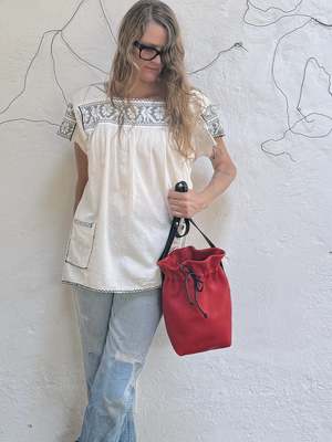 Eleven Thirty's Mariel bucket bag is a spacious and sturdy accessory to carry the day-to-day contents of your life. The thick, structured leather is beautifully highlighted with the cinched top that creates elegant folds at the opening. The bag does not cinch closed completely; rather, it is intended to act as a tote, providing easy access to your daily essentials. - Dimensions: 11" H x 8.5" W x 5.5" D - Exterior: 100% Italian leather - Hardware: Solid brass (chrome available upon request) - Interior: One leather slip pocket - Lining: Black, woven 100% cotton - Strap: Adjustable from 36"50" This item is made-to-order. Please allow 23 weeks for production time before it ships to you. Handmade in Toronto. Eleven Thirty produces beautiful leather bags in their Toronto studio. They do not waste any part of the natural, genuine leather hides, therefore small scars, marks and colour variations may be visible. These will vary from piece to piece and only add to the character and beauty of your bag.