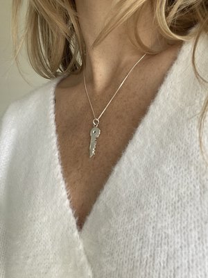 Hand-carved and cast in solid sterling silver, the Love Key is a symbol of love, compassion, and empathy. Sterling silver pendant on an 18 sterling silver box chain. 50% of every purchase is donated to The Centre for Addiction and Mental Health (CAMH).