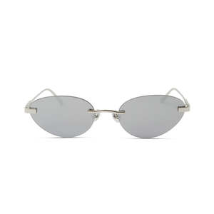 The Trinity from Elisa Johnson reinvents the iconic Matrix frame, advancing Y2K to today. The slim metal frame is lightweight yet premium, effortlessly linking statement-making and classic. Model: Trinity Shape: Oval Material: Metal Lens Description: Silver Mirror Lens Width: 55mm Nose Bridge: 19mm Temple Length: 140mm UV400, UVB, and UVA Protection.