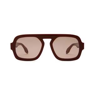 The Jane, named after Jane Fonda, is a commanding, luxe aviator frame with an edge. - Color: Maroon Brown - Shape: Aviator - Lens: Brown - Material: Acetate - Protection: UV400, UVB, and UVA - Type: Sunglasses Size & Fit - Lens width: 54 mm - Nose bridge: 20 mm - Temple length: 145 mm