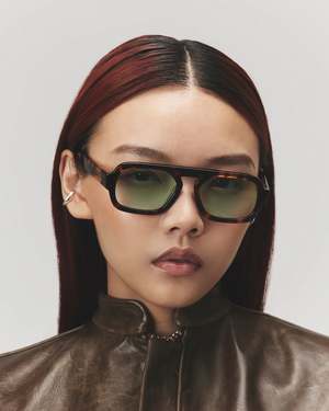 The Jane Mini sunglasses by Elisa Johnson, named after Elisa's birthday twin Jane Fonda, are commanding and luxe with an edgy feel. Model: Jane Shape: Aviator Material: Acetate Lens Description: Mint Green Lens Width: 52 mm Nose Bridge: 19 mm Temple Length: 145 mm UV400, UVB, and UVA protection.