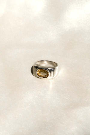 A stunning sterling silver band with a faceted citrine stone at the center.
