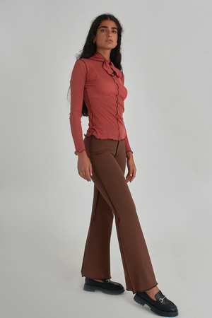 Our chocolate brown flared leggings are made with a super stretchy and thick ponte that will give you that hugged-in feeling when you wear them. These high rise stretch leggings have exposed dark brown stitching and an elasticized waistband. - Brown ponte fabric - 65% Rayon, 30% Nylon, 5% Spandex - Pants are secured with an elastic waistband - Made in Canada - Machine wash on a cool, gentle cycle and hang or lay flat to dry. - Marianne is 5'5 and wearing a size XL - Romy is 5'10 and is wearing a size Small