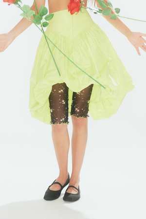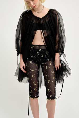 Who knew a see-through mesh legging could be so versatile! We love these playful floral pedal pushers layered under skirts, shorts, or on their own with a long shirt worn over top. These are a nod to the 90's and we love the playful spirit they bring to so many looks! - 100% Polyester - Bold green topstitching - Elastic waist - Wash in cool water and lay flat to dry - Made in Canada
