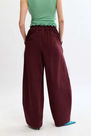 The Yves Pant is a high-waisted barrel trouser cut from soft cotton, with an easy elastic waistband at the back and deep pockets (because we know youll use them). Fitted at the waist, relaxed through the leg: the silhouette flatters without trying too hard. Made in Canada. MATERIALS & CARE 100% organic cotton Machine wash cold, hang to dry, iron medium, do not bleach, do not tumble dry SIZE & FIT Oversized fit, size down for a more fitted look Size XS - Inseam: 29.5", Waist: 28" Size S - Inseam: 29.5", Waist: 29" Size M - Inseam: 29.5", Waist: 30" Size L - Inseam: 29.5", Waist: 33"