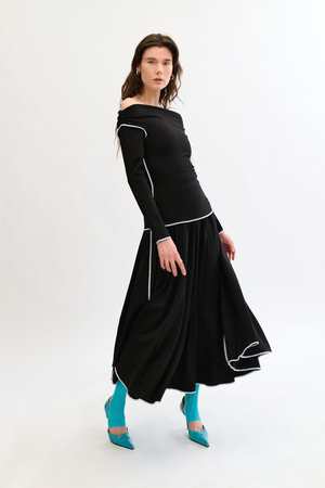 Meet Florence, our new maxi knit skirt. Cut from stretchy ponte fabric, its effortless to slip on and comfortable all day. Pair it with the matching Heidi Top for the look of a dress, without any fuss. Body: 70% Rayon, 25% Nylon, 5% Elastane. Made in Canada.