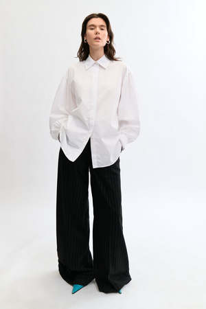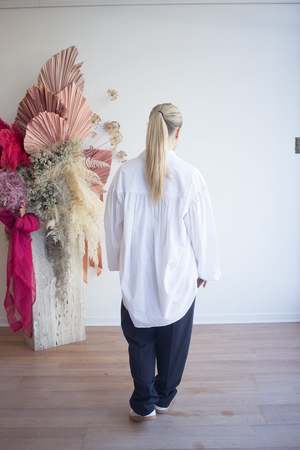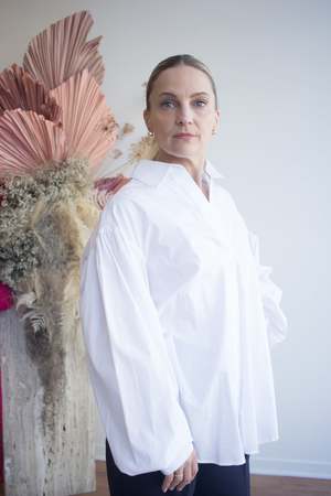The Eliza Faulkner Wren Shirt is crafted from crisp cotton and features a classic collar with elegant balloon sleeves. The Wren feels like the manifestation of a perfect oversized buttoned-up shirt, with cuffed sleeves that exaggerate volume throughout the arms and a high-low hem. Sizing Notes: This style fits true to size; it is made intentionally big throughout the body. We recommend your usual size. Please see size chart for fit guidance. Heather is wearing size S. 100% Cotton Wash cold, hang to dry. Made in Montreal.