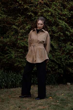 The Laurence Jacket is crafted from heavyweight organic cotton and features oversized sleeves, front patch pockets, and a removable waist belt. The adjustable features and classic oversized silhouette make it versatile for different looks. Pair with the Yves Pant for a monochromatic fit or wear the Laurence as a statement jacket. Sizing Notes: This jacket fits true to size and is made a little oversized. The belt is removable and adjustable to create your perfect fit. We recommend your usual size. Please see size chart for fit guidance. Model is wearing size S. 100% Organic Cotton Wash cold, hang to dry. Made in Montreal.