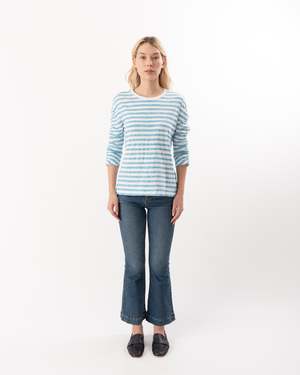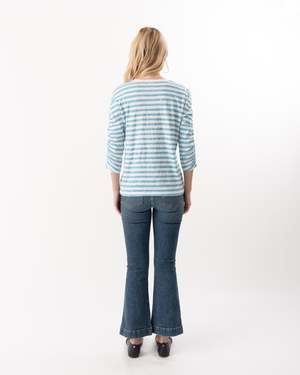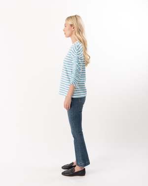 This 3/4 ruched sleeve striped tee offers a chic and relaxed fit, combining comfort with effortless style. The subtle ruching detail on the sleeves adds a modern twist to the classic striped pattern, making it perfect for casual outings or layered looks. Its breathable fabric ensures all-day comfort while keeping your outfit fresh and fashionable.