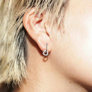 The baby version of EMBLM's signature twelve point Spur Earring. Product Details: - 10mm huggie latch - 8mm charm - Sterling silver EMBLM jewelry is handmade in Los Angeles, CA.