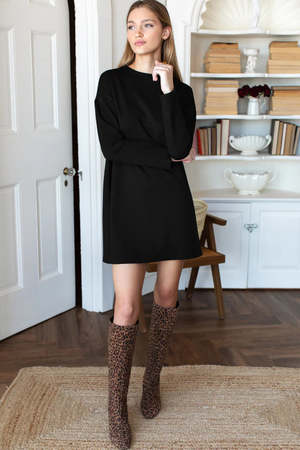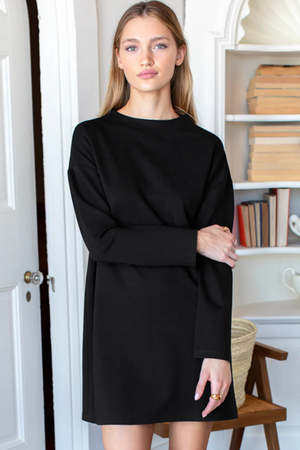 Classic dress with a nod to mod styling. Easy to wear ponte composition is great for dressing up. - Slightly structured ponte fabrication - Dropped shoulder - Jewel neckline - Invisible partial back zipper - Made in NYC