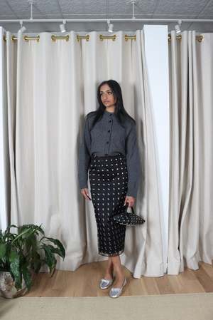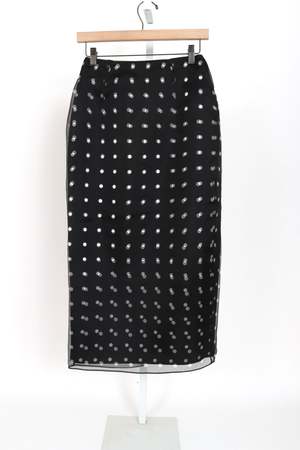 The Bethan Skirt in Polka Dot Taffeta Faille & Organza features a sheer organza overlay that enhances its dimensional texture. This pencil silhouette is structured yet lightweight, creating a flattering shape through the waist and hips. Finished in a classic polka dot motif. 100% GRS Recycled Polyester / Contrast: 100% Silk Organza / Lining: 100% Polyester.
