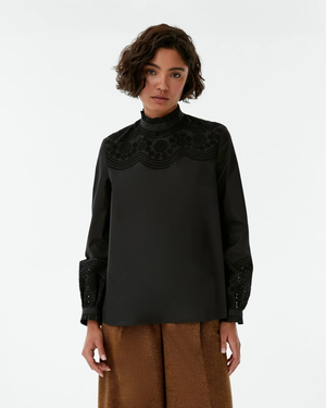 Timeless elegance with a modern edge. This long sleeve black blouse by Emporio Sirenuse features a classic collar and silhouette, offering effortless sophistication for both day and evening wear. Crafted with refined attention to detail, its a versatile staple that pairs seamlessly with everything from structured trousers to flowing skirts.
