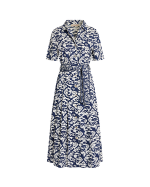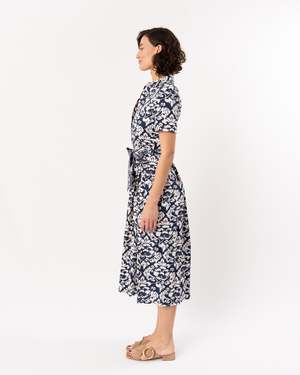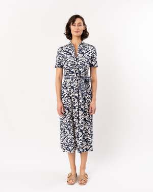 The beloved Claudia Dress plays on the classic chemisier silhouette, made special with a stunning dark blue hue and delicate floral detailing. This versatile piece effortlessly transitions from day to night, offering a flattering silhouette for any occasion. The rich blue tone pairs beautifully with neutral accessories or bold statement pieces, making it a wardrobe essential. Perfect for those who appreciate timeless style with modern flair.