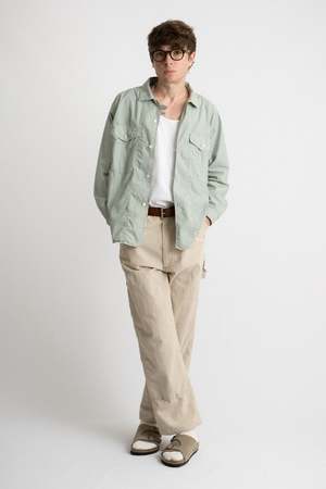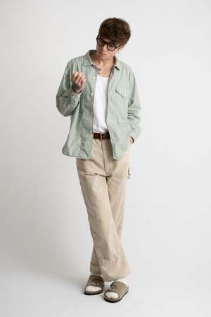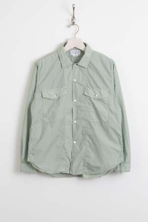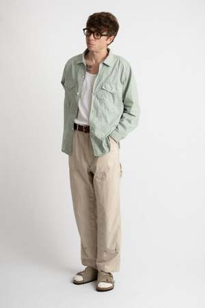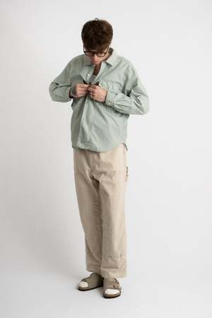 The work shirt is a standard design from the ENDS and MEANS canon Seen here in a melon coloured cotton / nylon Japanese typewriter cloth - which is crisp, cool, and three-season suitable An ultimately casual shirt meant for every day wear, it features chainstitching throughout to create puckered and imperfect seams Featuring a five button opening, two chest pockets, darted shoulders, button closure cuffs, and v-insert side hems 59% cotton, 41% nylon Made in Japan Model is 5'11", 145lbs and wears size medium Title tag Work Shirts Melon Perfect Circle Description tag The work shirt is a standard design from the ENDS and MEANS canon. Seen here in a melon coloured cotton / nylon Japanese typewriter cloth - which is crisp, cool, and three-season suitable. An ultimately casual shirt meant for every day wear, it features chainstitching throughout to create puckered and imperfect seams. Made in Japan.