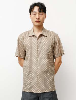 A regular fit short-sleeved shirt in lightweight polka dot printed cotton. Constructed with a convertible collar, a cuffed sleeve with a split motif, and asymmetrical patch pockets. Finished with tonal buttons and a straight hem with split side seams. - Made in USA - 100% Cotton - Regular fit - Machine wash - Kim is 5'11, 155lbs and wears size medium