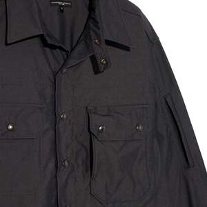 Inspired by Chief Petty Officer jackets designed for the US Navy, this version from Engineered Garments features asymmetric chest pockets along with concealed sleeve and back zip pockets. Branded poppers are used throughout, including on the throat latch for colder weather. The curved hem positions it as a shirt jacket rather than strictly outerwear. - CPO style shirt - Large chest pockets w/snap closure - Full snap closure on front - Curved hem - 80% Cotton, 20% Polyester - Made in the USA