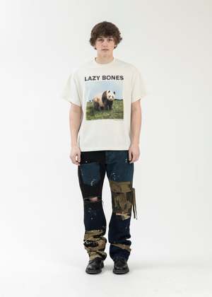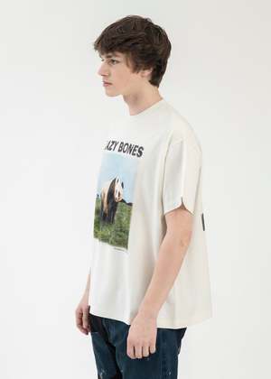 This mid-weight crewneck t-shirt showcases a washed off-white finish, evoking a vintage aesthetic. Highlighting playful graphics at the both the front and back. Relax fit 100% Cotton Imported Model is wearing a size M Model is 6'1 (185cm), 159 pounds (72 kg), usually wears M in tops. A size 30 in denim and 46 trousers. Size 10 in shoes.