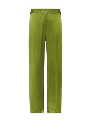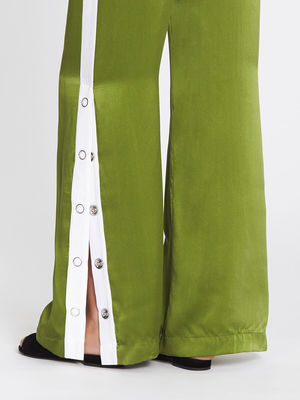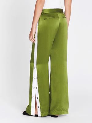 The Equipment Arwen Warm Up Pants in Combat Green are an absolute must have this season. Constructed from a stunning black silk satin these exagerated pants feature an elasticated waistband with a single button closure, back welt pockets and a white stripe at the side opening finished with snap buttons for an ultra cool girl twist. ---- FABRIC OR COMPOSITION 100% Silk ---- SIZE AND FIT The EQUIPMENT ARWEN WARM UP PANT in COMBAT GREEN is true to size Measurements taken from a Size S Outseam: 107.5cm / 42.25inch Leg Split Height: 51.5cm / 20.5in Model is wearing a Size S, Sarah is 178cm / 59 Bust 83cm / 32 1/4 in /// Waist 66cm / 26 in /// Hips 89.5cm / 25 in ---- BRAND Equipment clothing, founded in 1976 by Christian Restoin, has become renowned for its refined tailoring, luxe fabrics and timeless appeal. In 2010 the brand launched its range of luxury Equipment shirts and blouses designed specifically for the modern woman, which has taken the world by storm. With unparalleled sophistication and discreet sexiness, Equipment clothing is chic, elegant and classic with a Parisian twist. Shop the latest trends and styles of Equipment fashion tops, blouses, shirts and more online at Order of Style.