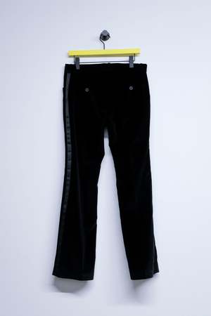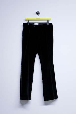 Black velvet pipping flare trousers by Ernest W. Baker. Cotton bottoms.