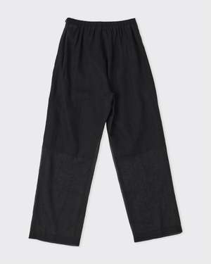 Easy trousers cut from a fine woven cotton with a lightness in the hand that suits the warmer months. The relaxed fit falls through the leg without excess volume, moving naturally with the body rather than imposing a silhouette. The fine weave catches light and gives the fabric a subtle translucency that reads as refined rather than casual. Made in Japan by Ernie Palo. Details - Relaxed, straight-leg silhouette - Fine, lightweight woven cotton - Available in Black, Sax, and Yellow Fabric - 100% Cotton (Woven)