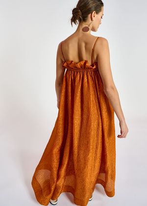 Suspended from barely-there straps, this maxi dress is woven from a mesmerizing jacquard fabric and designed with plenty of volume, falling to a swishy ankle length. The tone-on-tone floral motif has a subtle glisten thanks to the infused metallic threads. - Adjustable shoulder straps - Elasticated above the bust - Slit pockets - A-line - Lined - Bronze View Essentiel Antwerps Size Chart here.
