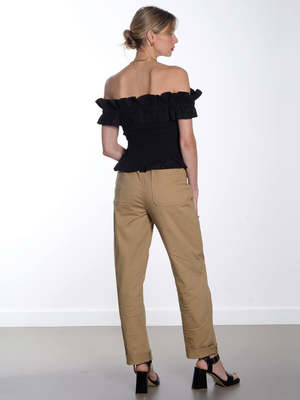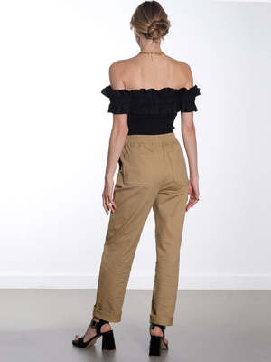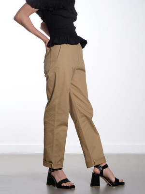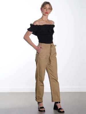 Experience effortless style with Essentiel Antwerp's Fomo Pants. These versatile pants boast a high-waisted design, cropped length, turn-up detail, and elasticated waistband for a comfortable pull-on style. Made from lightweight, crisp cotton with a slight stretch, they are the perfect addition to your wardrobe. Details - Elasticated waistband with drawstring - High-waisted - Pocket - Relaxed fit - Tapered leg - Cropped length - Turn-up detail - Pull-on style - Crisp cotton fabric Fabric care Composition: 98% Organic Cotton, 2% Elastane. Care: 30c machine wash. Do not tumble dry.