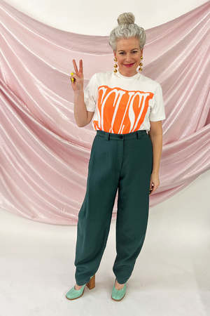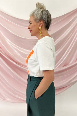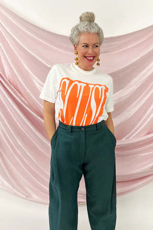 Soft organic cotton-jersey T-shirt with classic crew neckline is designed for an oversized fit and is printed with big and bold letters on the front. - 100% organic cotton - 'Scusi' letter print on the front - Long and oversized fit - Off-white/Neon orange