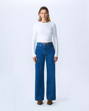 The Grace Jeans by EVOLUXXY feature a high-rise and wide leg silhouette. Button and concealed zip fastening at front. Fits true to size; take your usual size. For a curvier shape, consider sizing up. Fabric origin: Italy Made in U.S.A. 100% Cotton.