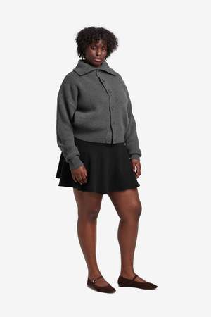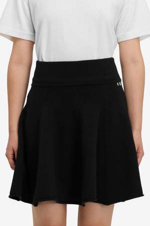 Short circle skirt with a rib-knitted waistband and a rolling edge hem.