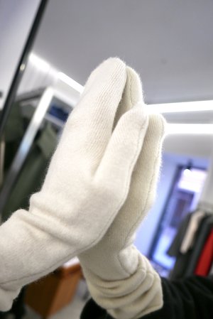 Long mittens in the brand's signature cashmere blend knit in cream color. Length: 36 cm. 89% cashmere, 10% nylon, 1% spandex. ONE SIZE. UNISEX. CARE: To retain its quality for a long time, cashmere requires some special care. Cashmere loves water. Wash it regularly in a machine on a wool programme (30c, 600rpm), using wool detergent or baby shampoo and no softener. Put each garment in a separate washing bag or pillow case. Do not run a cycle with more than three garments at once. After washing, dry the garment flat on a towel. Iron at low temperature, using always a damp cloth between the iron and the cashmere. Store the garment folded.