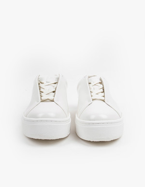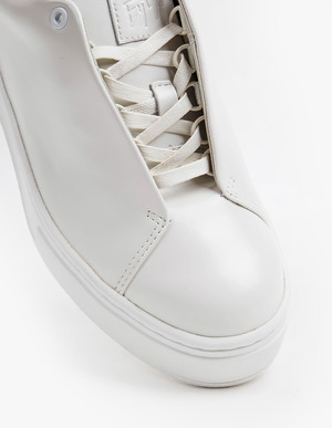 The Doja Leather in White by Eytys features a shiny calf leather upper paired with a vulcanized rubber sole an purple tab at the back. The sneakers have an elevated toe cap, concealed lacing and a cork insole that provides great arch support. A perfect combination between comfortability and a minimalistic design.