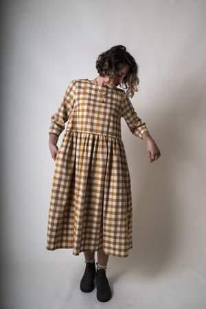 Relaxed fit Rouched waist with side seam pockets . 100% Wool Seersucker Hand Wash - Do not Tumble Dry Made in UK S equivalent to UK8-10 M equivalent to UK10-12 L equivalent to UK 12-14 Model is 5 ft 7 and is swearing a small