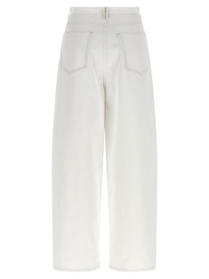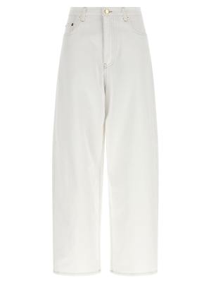 Women > Clothing > Jeans Garment-dyed cotton denim jeans with contrast stitching, a high waist, wide and tapered leg, front zip and button closure, five pockets, and a 'Filo Diamante' detail at the back. Composition: 99% cotton, 1% elastane.