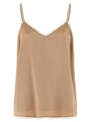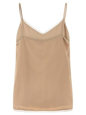 Women > Clothing > Topwear Liquid satin lingerie top with a sweetheart neckline, thin straps, piping with tulle insert and diamond thread, and side zip closure. Composition: 100% viscose.