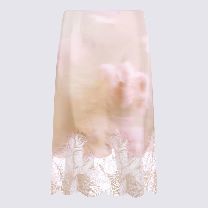 Beige and Pink Silk Floral Skirt