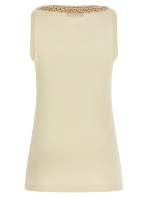 Women > Clothing > Topwear Ribbed cotton jersey top with a wide round neckline finished with sequin denim-effect tweed piping. Composition: 94% cotton, 6% elastane.