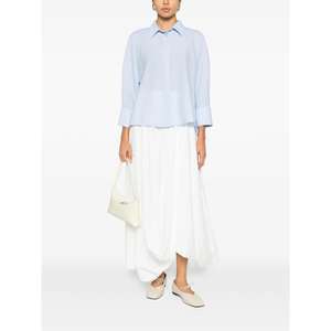Women > Clothing > Topwear > Shirts Light blue shirt with concealed button fastening, long sleeves with buttoned cuffs, a classic collar, and a straight hem.