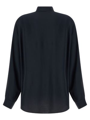 Women > Clothing > Topwear > Shirts Silk-blend crepe shirt with collar and sleeves featuring cut-out details, front closure with hidden buttons, and long sleeves with cuffs. Composition: 68% acetate, 32% silk.