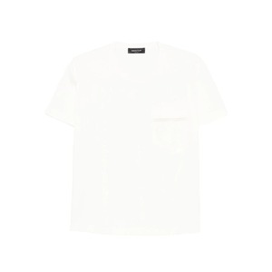 Women > Clothing > Topwear > T-Shirts White T-shirt with chest pocket, short sleeves, and a round neck.