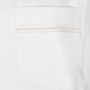 Women > Clothing > Topwear > T-Shirts White viscose T-shirt from Fabiana Filippi featuring a crew neck, short sleeves, a front pocket, and a regular fit. Composition: 56% Viscose, 36% Polyamide, 8% Elastane.