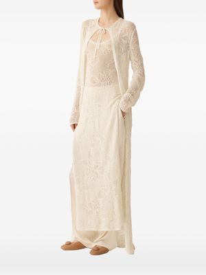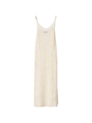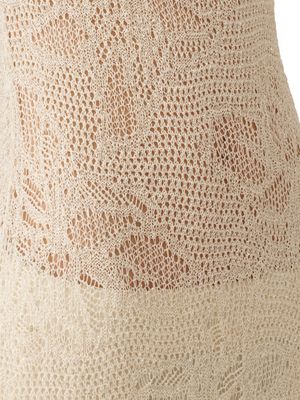 Women > Clothing > Dresses Beige crochet open-knit dress with tie detail.