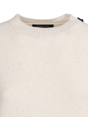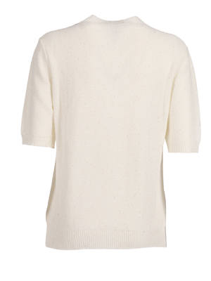 Women > Clothing > Sweaters Sequin short sleeve crew neck sweater. Composition: 61% Cotton, 38% Linen, 1% Polyester.