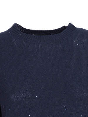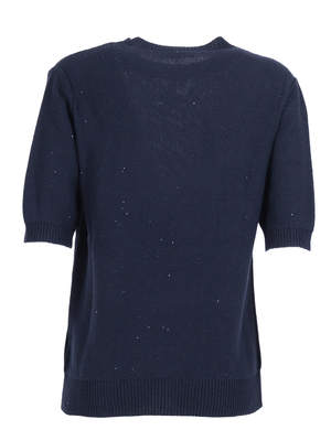 Women > Clothing > Sweaters Sequin short sleeve crew neck sweater. Composition: 61% cotton, 38% linen, 1% polyester.