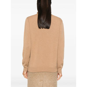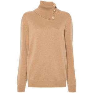Women > Clothing > Sweaters > Sweaters Camel brown sweater in cashmere with a knitted construction, Fabula buttons to the neck, a ribbed turtleneck, long sleeves, and ribbed cuffs and hem.
