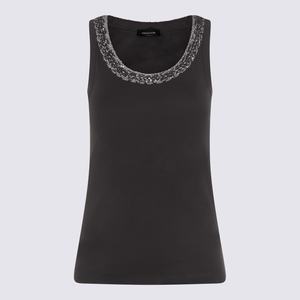 Women > Clothing > Topwear > Tank Tops Navy cotton top from Fabiana Filippi featuring a round neck, sleeveless design, front detail, and a regular fit. Composition: 94% Cotton, 6% Elastane.