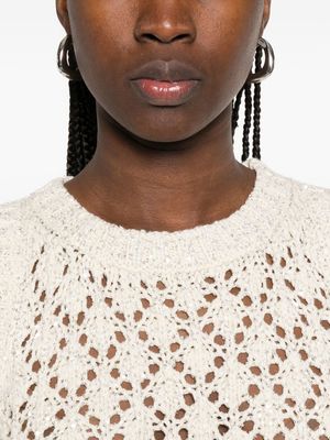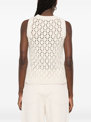 Women > Clothing > Topwear > Tank Tops Light beige open-knit tank top with a crew neck and sleeveless design. Composition: 69% Cotton, 17% Polyamide, 14% Polyester.