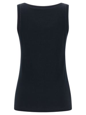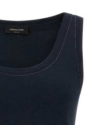 Women > Clothing > Topwear Sleeveless top in slightly stretchy cotton blend with round neckline and jewel detail on the edges. Composition: 93% cotton, 7% elastane.